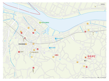 JR成田線佐原駅前からバスで約10分、佐原市街を東を流れている利根川とその水郷地帯を望む高台に鎮座している。境内は12万2100平方m(3万7千余坪)の広さである。老杉が欝蒼として茂り、森厳の気は古代に生きている時空を越えさせてくれる思いがする。参道から総門に至る。その左側の細い道の奥に末社押手稲荷社がある。その奥に「要