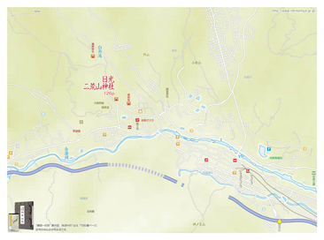JR東北新幹線宇都宮駅から1km。東武電車宇都宮駅からは500mの市内中央部に二荒山神社がある。二荒山と書いて「ふたあらやま」と呼ぶ。。日光にも二荒山神社があるが、これは奈良時代末期に下野国の僧勝道が男体山の男体山の山中で修行をし、男体山の神霊を祀って二荒権現とした。ニ荒を音読すると「にっこう」なので日光権現と呼ばれるようになった。
