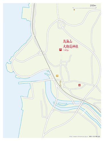 岡口ノ宮とともに鳥海山の登山口である。吹浦口ノ宮も蕨岡口ノ宮も里宮で、山頂の本殿に祭神の大