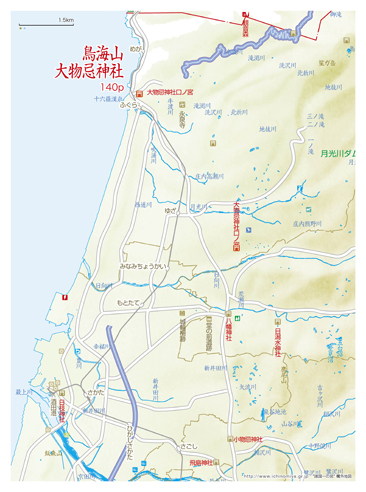 鳥海山は「出羽富士」の名がある名山である。吹浦と象潟の海岸から山岳観光道路ブルーラインで5合目まで車で登れる。海辺よりそびえたつ美しい山容とは別に、古代の人々にとって噴煙を巻上げ、暗雲をただよわせ、大地を揺るがすなど天変地異をもたらす恐ろしい山もあり、昔から畏敬の山、山霊が宿る尊い山であった。神が降臨された山頂の聖地に神祠を造り平穏を祈り、朝夕の美しい山容に古代の人々は生きる喜びを感じたのであった。里宮は神霊を拝する聖なる場所に置かれた。